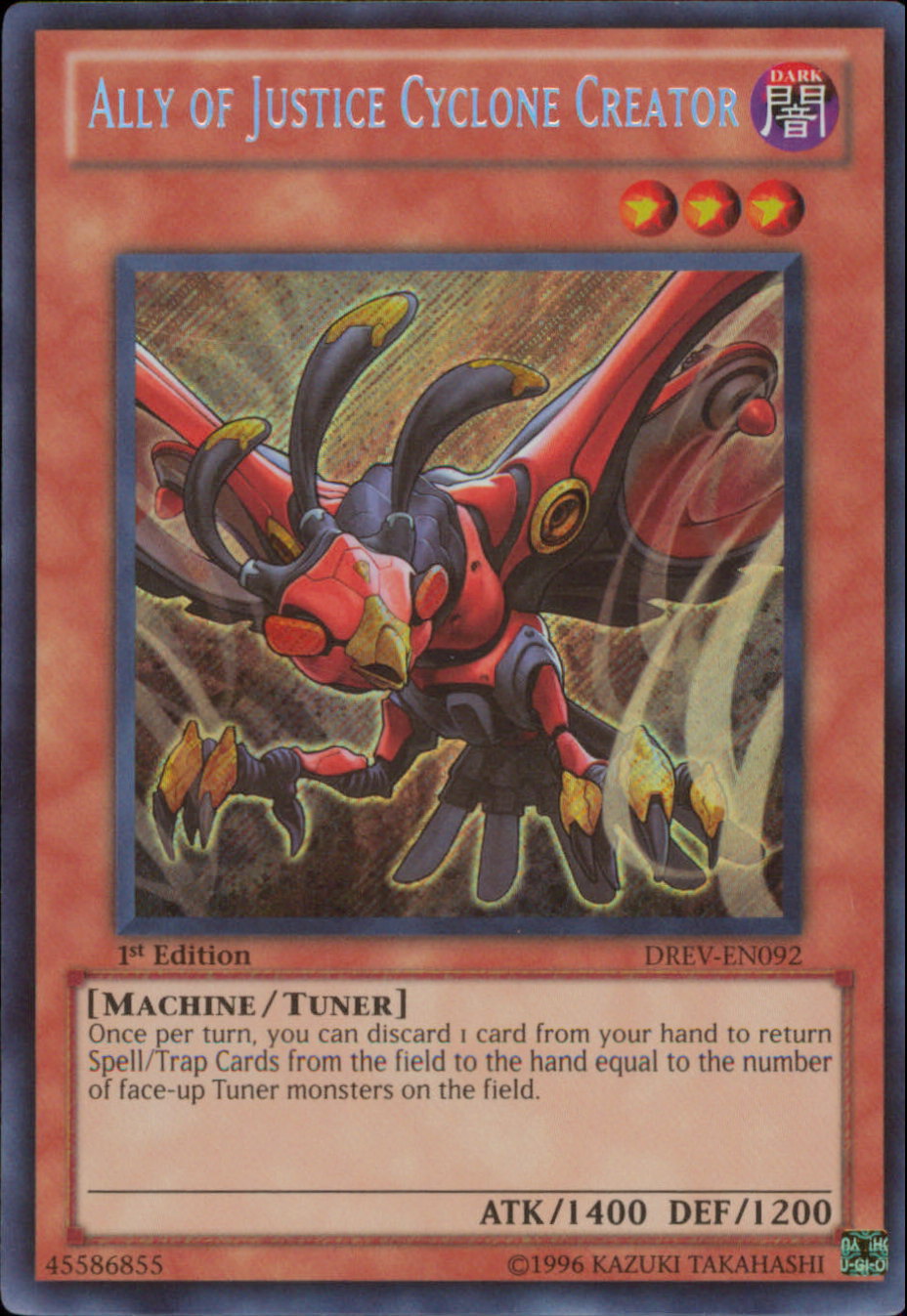 DREV-EN092 ALLY OF JUSTICE CYCLONE CREATOR Secret Rare Yugioh Holofoil Card