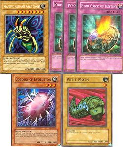 TSC-PEFRECTLY ULTIMATE GREAT MOTH, MRD-011 COCOON OF EVOLUTION, MRD-023 PETIT MOTH, & 3 PGD-050 PYRO CLOCK OF DESTINY