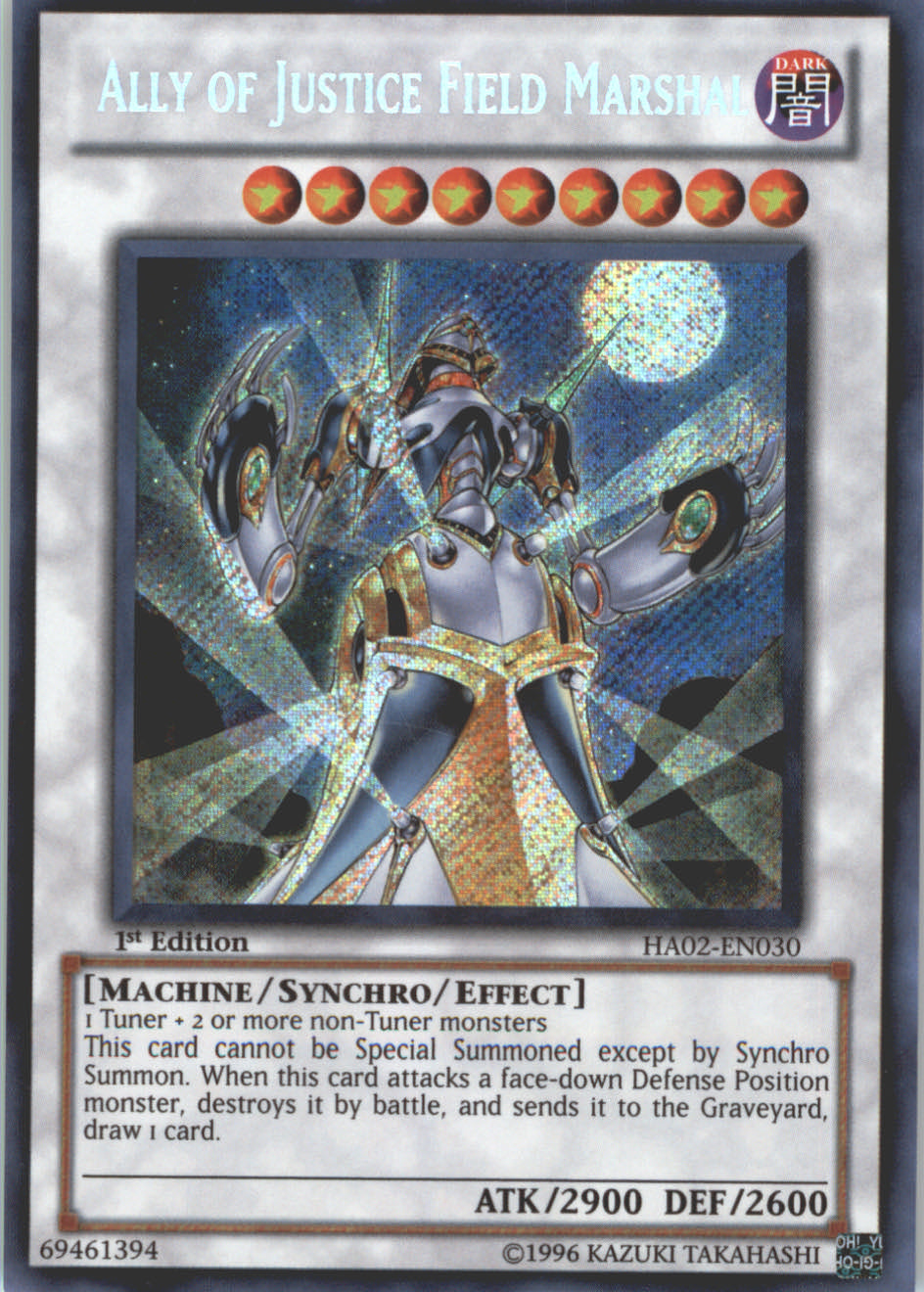 HA02-EN030 ALLY OF JUSTICE FIELD MARSHAL Secret Rare Holofoil Yugioh Hidden Arsenal 2 Card