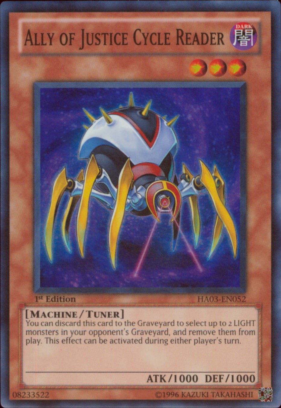 HA03-EN052 ALLY OF JUSTICE CYCLE READER Yugioh Hidden Arsenal 3 Super Rare Holofoil Card