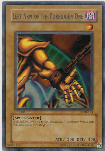 YuGiOh LOB-123 LEFT ARM OF THE FORBIDDEN ONE 1st Edition Ultra Rare HoloFoil Card<br> Out of Stock