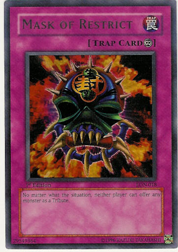 LON-018 Mask of Restrict 1st Edition Ultra Rare HoloFoil Card