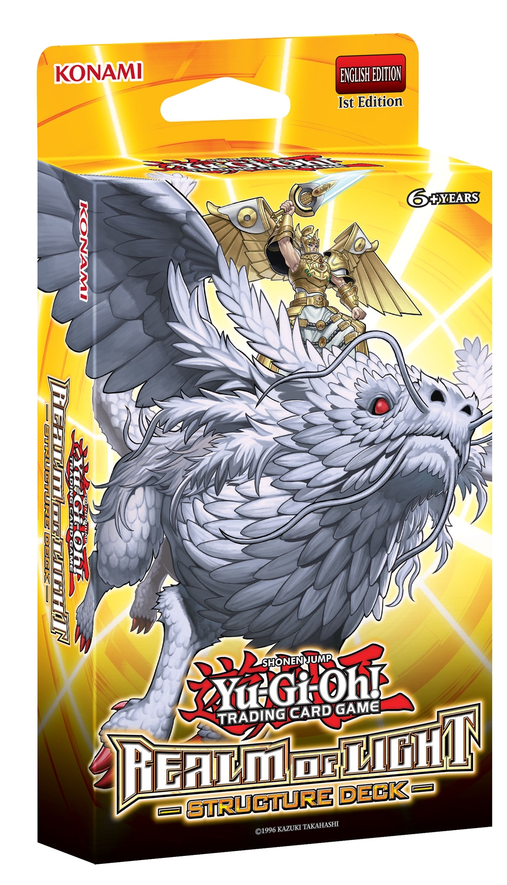Realm of Light focuses on the Lightsworn Deck theme, which has been a very popular Deck for a number of years; reprints of Lightsworn cards have been the primary drivers for other products. Lightsworn Monsters are blessed with incredible effects, high ATK/DEF, or both; this Structure Deck comes with the most powerful of the Lightsworn forces and allies from the Yu-Gi-Oh! GX era and beyond. Lightsworn have never had Extra Deck monsters before, but that all changes with the all-new Synchro Monster, Michael, the Arch-Lightsworn, capable of banishing any enemy card while refilling your Deck and your Life Points! The Deck also includes 2 Lightsworn Tuner monsters! Finally, a vulnerability of Lightsworn Decks is finally redressed with Lightsworn Sanctuary, a world-premiere Spell Card!