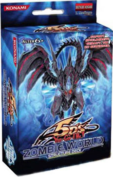 Be prepared for the ultimate scare with the all new Yu-Gi-Oh! Structure Deck, Zombie World! Introducing brand new cards and some highly desirable reprints, the all new Structure Deck allows Duelist to create an indestructible Zombie army by turning ALL monsters into Zombies. This 40-card Deck is enjoyable for the intermediate player and creates many new possibilities for the tournament level players by allowing them to fit any monster into a Zombie Deck. This Deck also contains a new rulebook, playmat and a Dueling Guide that explains some of the exciting new strategies to use as well as relevant cards from recently-released products to help build an unbeatable Deck! Create an outbreak of Zombies with Zombie World!