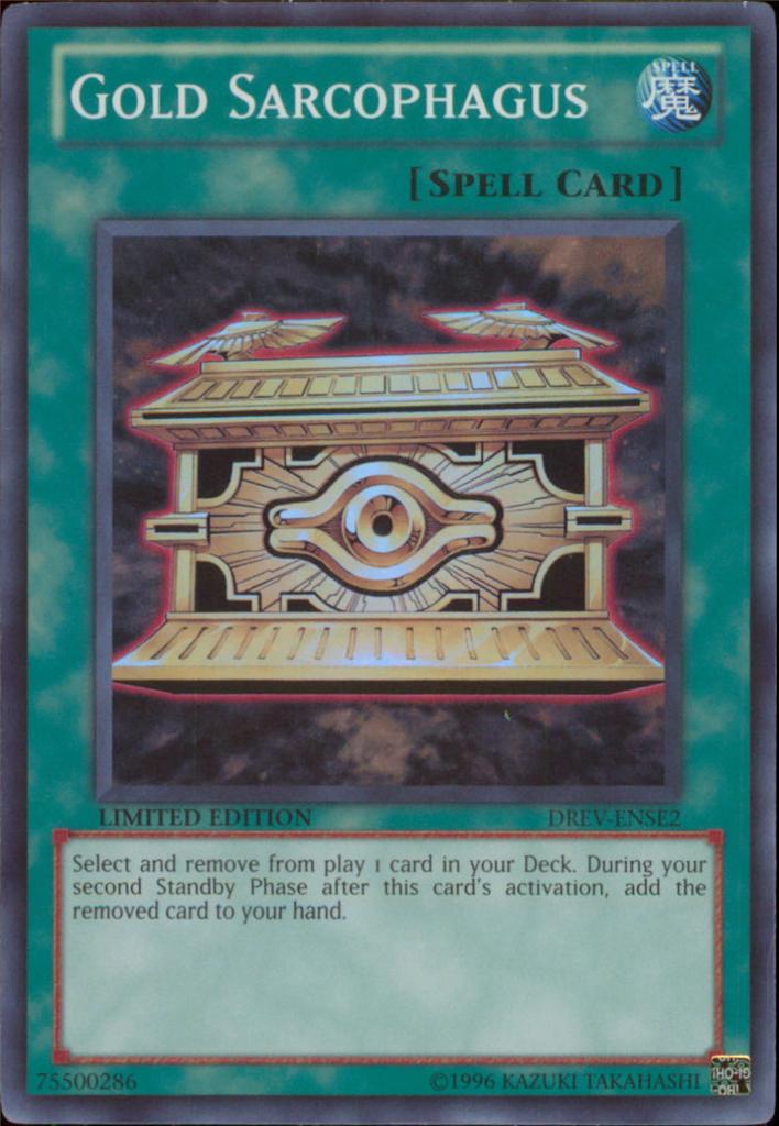 YuGiOh 5Ds DREV-ENSE2 Limited Edition GOLD SARCOPHAGUS Super Rare HoloFoil Card