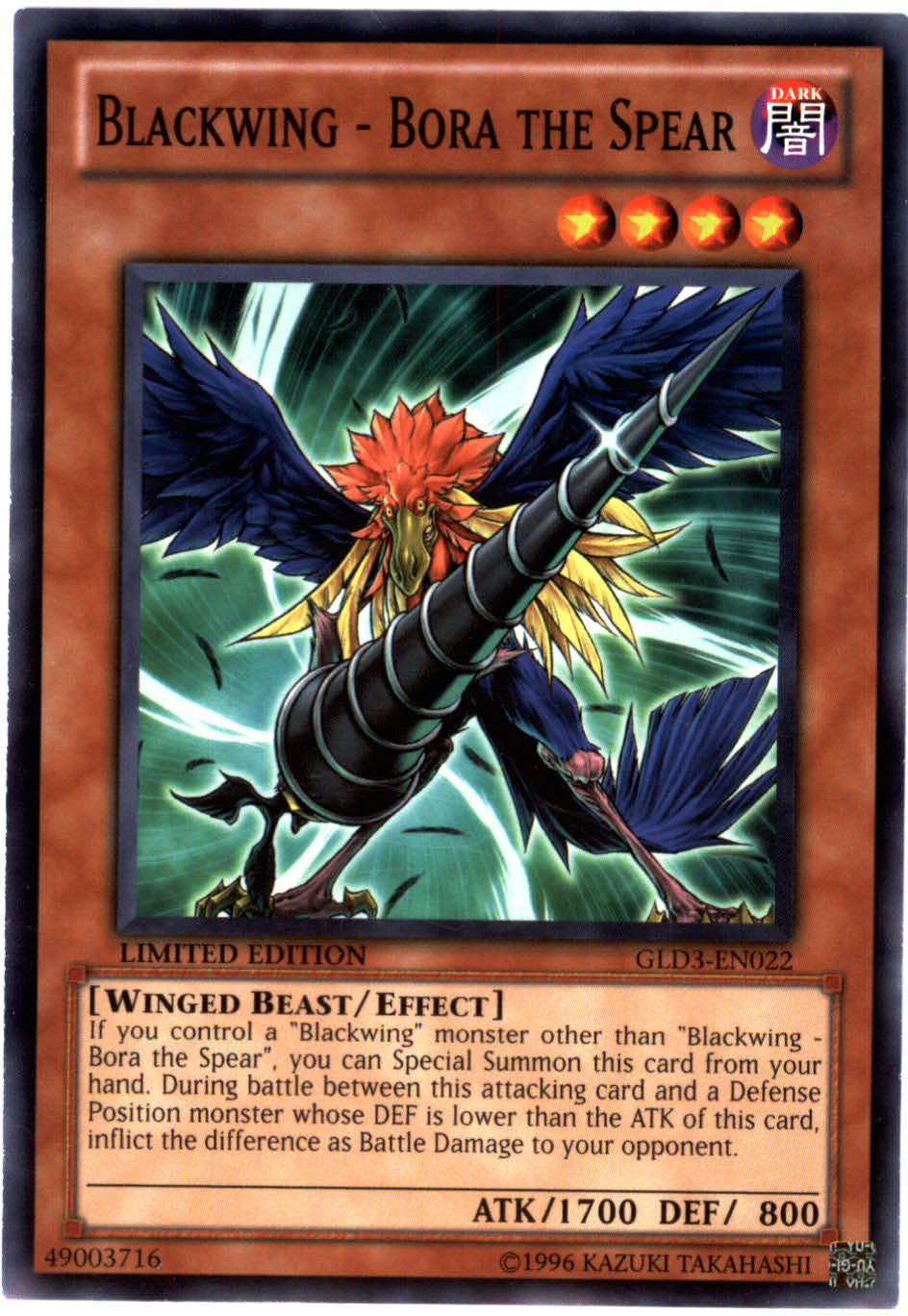 YuGiOh 5Ds GLD3-EN022 Limited Edition BLACKWING - BORA THE SPEAR Common Card
