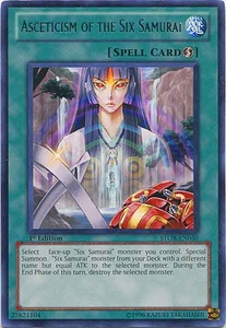 YuGiOh 5Ds STOR-EN050 ASCETISCISM OF THE SIX SAMURAI Rare Silver/Foil Card