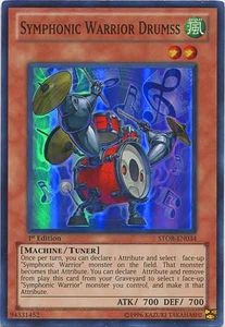 YuGiOh 5Ds STOR-EN034 SYMPHONIC WARRIOR DRUMSS Super Rare Holofoil Card