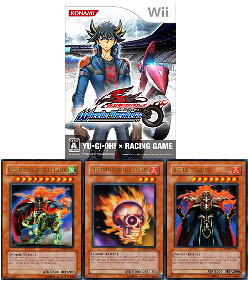 This Factory Sealed version of this Wheelie Breakers Video Game includes three promotional cards, which are used by Hunter Pace in the Yu-Gi-Oh! 5D's anime. These include: "Skull Flames", "Burning Skull Head" and "Speed King - Skull Flames"!