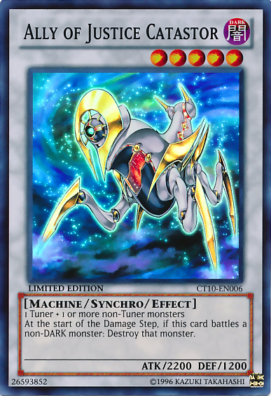 YuGiOh CT10-EN006 Limited Edition ALLY OF JUSTICE CATASTOR Mint Condition SUPER RARE HoloFoil Card