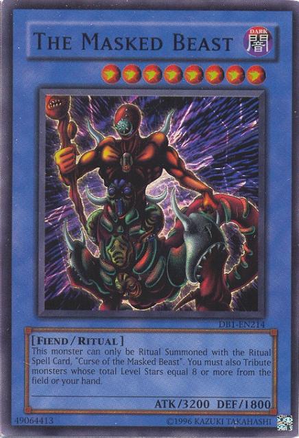 This monster can only be Ritual Summoned with the Ritual Spell Card, "Curse of the Masked Beast". You must also Tribute monsters whose total Level Stars equals 8 or more from the field or your hand.