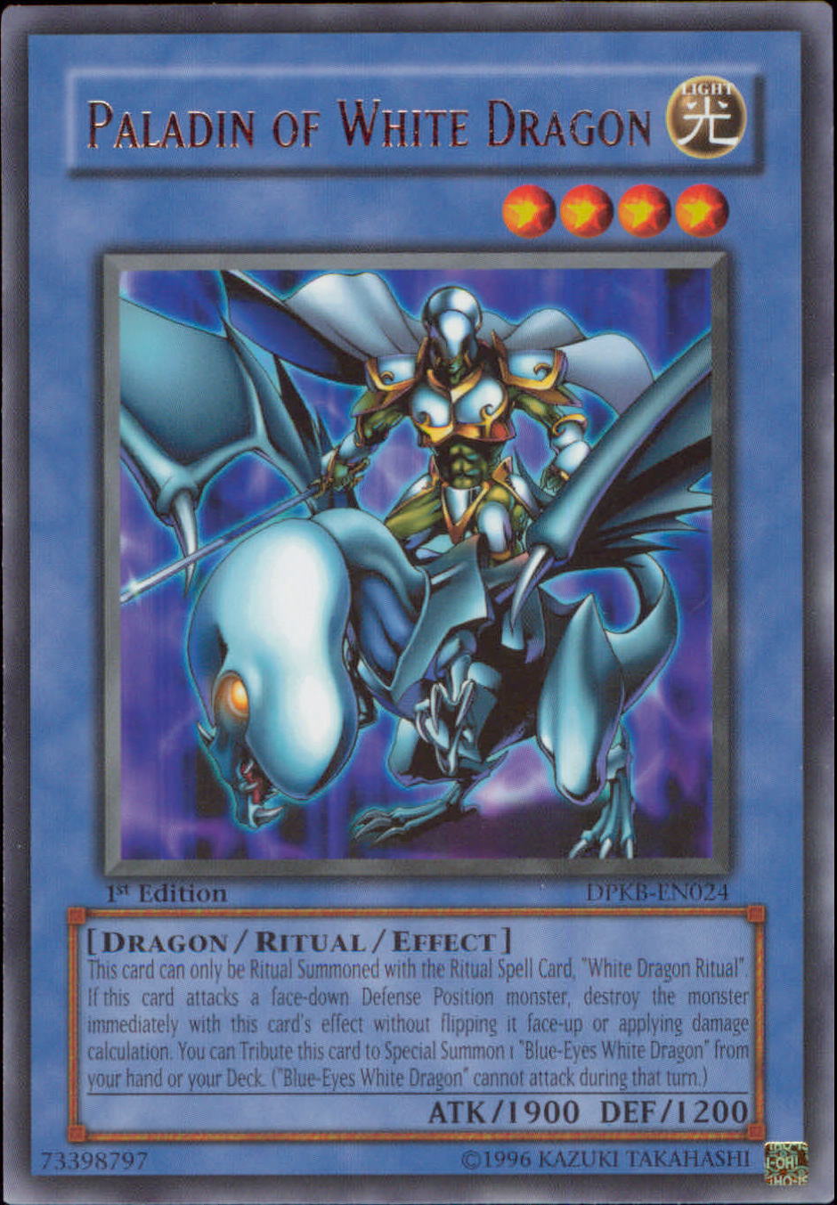YuGiOh DPKB-EN024 1st Edition PALADIN OF WHITE DRAGON Rare Card