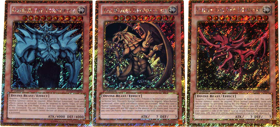 YuGiOh Official / Authentic Unlimited Edition EGYPTIAN GOD CARD SET of 3 Gold Secret Rare HoloFoil Cards!