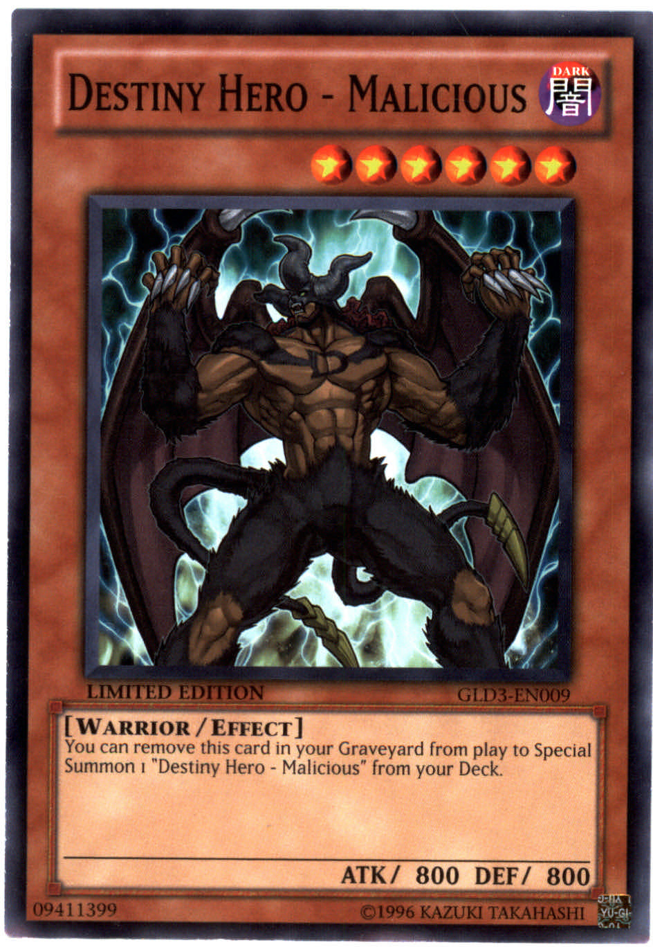 Yu Gi Oh 5Ds GLD3-EN009 Limited Edition DESTINY HERO - MALICIOUS Common Card