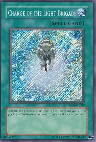 SOVR-ENSE2 Charge of the Light Brigade Super Rare [Spell Card] "Send the top 3 cards of your Deck to the Graveyard. Add 1 Level 4 or lower "Lightsworn" monster from your Deck to your hand." Now in Stock