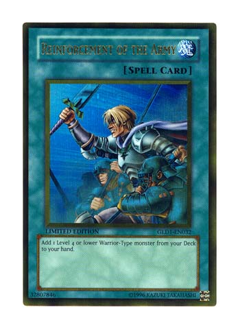 Yu gi oh GX GLD1-EN032 Limited Edition REINFORCEMENT OF THE ARMY Gold Technology ULTRA RARE HoloFoil Card