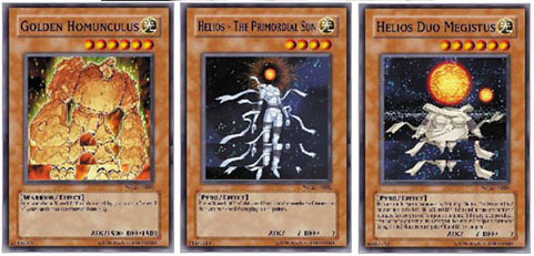 Yu gi oh GX WC6 WORLD CHAMPIONSHIP 2006 Full Set of 3 SUPER RARE HoloFoil Cards<br>GOLDEN HOMUNCULUS, HELIOS - THE PRIMORDIAL SUN & DUO MEGISTUS