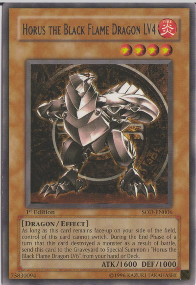 Yu Gi Oh SOD-EN006 Unlimited Edition HORUS THE BLACK FLAME DRAGON LV4 Rare Foil Near Mint Card