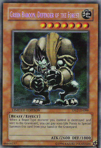 YUGIOH 5D's RP02-EN099 GREEN BABOON, DEFENDER OF THE FOREST Limited Edition SECRET RARE Card