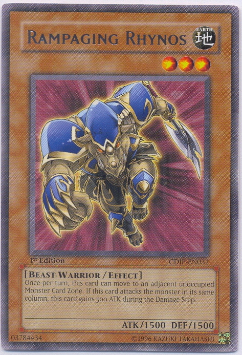 Yu-gi-oh GX CDIP-EN031 1st Edition RAMPAGING RHYNOS Rare Foil Card