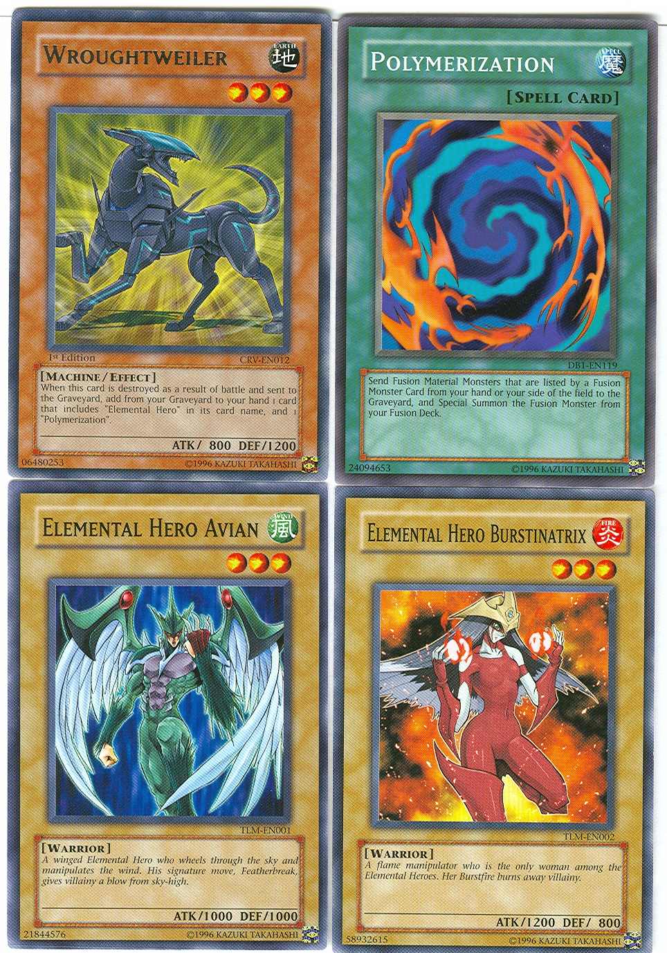 YuGiOh GX ELEMENTAL HERO FLAME WINGMAN 4 Card Fusion/Summoning Set!