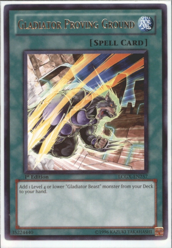 YuGiOh GX LCGX-EN257 1st Edition GLADIATOR PROVING GROUND Rare/Silver Card