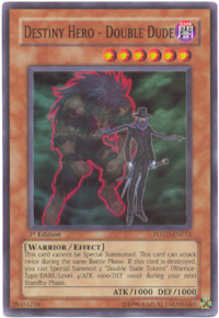 YUGIOH GX POTD-EN012 Unlimited Edition DESTINY HERO DOUBLE DUDE Super Rare HoloFoil Card