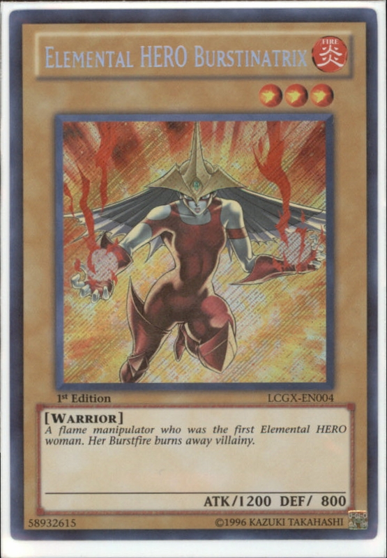 YuGiOh LCGX-EN004 1st Edition ELEMENTAL HERO BURSTINATRIX (Alternate Artwork) Secret Rare HoloFoil Card