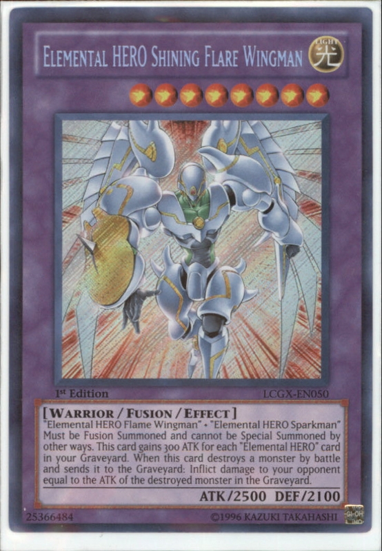 YuGiOh LCGX-EN050 1st Edition ELEMENTAL HERO SHINING FLARE WINGMAN Secret Rare HoloFoil Card