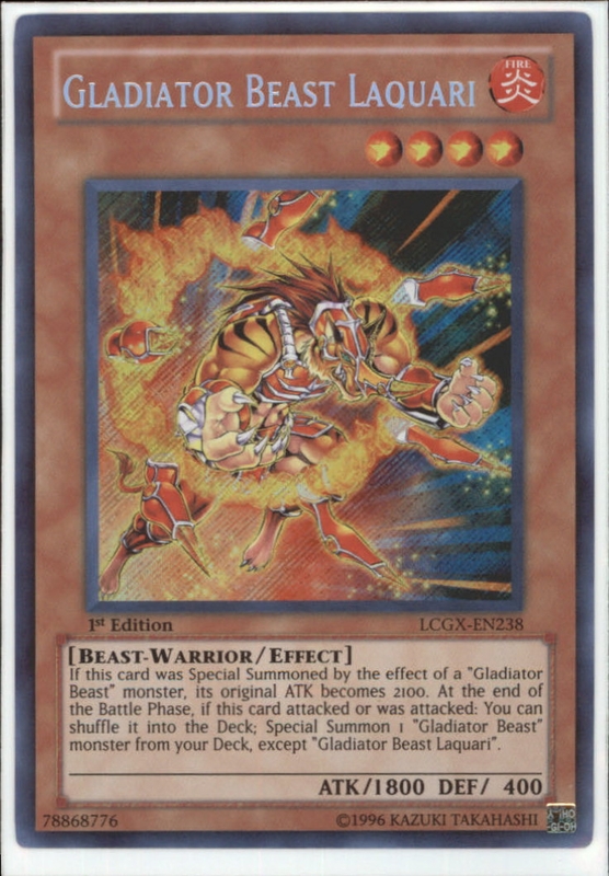YuGiOh LCGX-EN238 1st Edition GLADIATOR BEAST LAQUARI Secret Rare HoloFoil Card