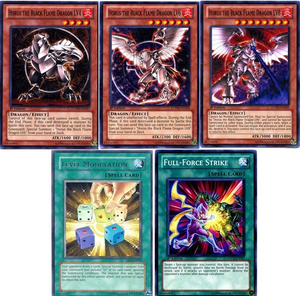 YuGiOh LCYW-EN199 HORUS THE BLACK FLAME DRAGON LV8 5 Card Combo Set! DP1-EN019 + ORCS-EN047