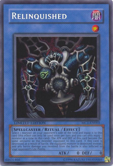Yu-gi-oh MC1-EN003 RELINQUISHED Secret Rare Promo HoloFoil Card.