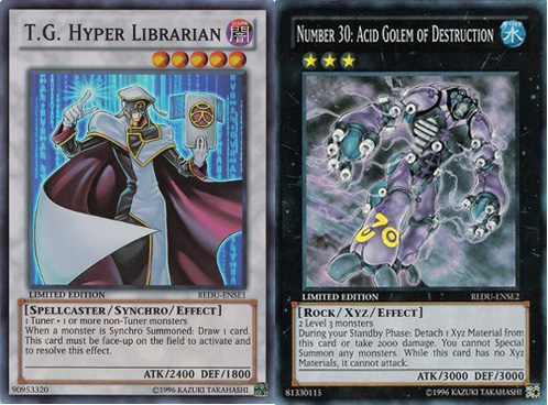 YuGiOh Return of the Duelist (REDU) Special Edition SUPER RARE Set<br> T.G. HYPER LIBRARIAN + No. 30: ACID GOLEM OF DESTRUCTION