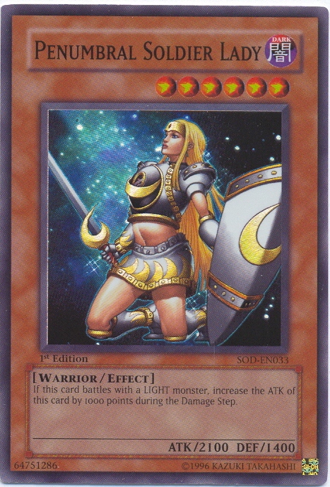 YuGiOh SOD-EN033 Unlimited (2E) Edition PENUMBRAL SOLDIER LADY Super Rare HoloFoil Card