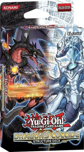 This 1st Edition DRAGONS COLLIDE Structure Deck Contains: 37 Common Cards, 2 Ultra Rare Cards, 1 Super Rare Card, 1 Rulebook, 1 Game Mat, 1 Dueling Guide